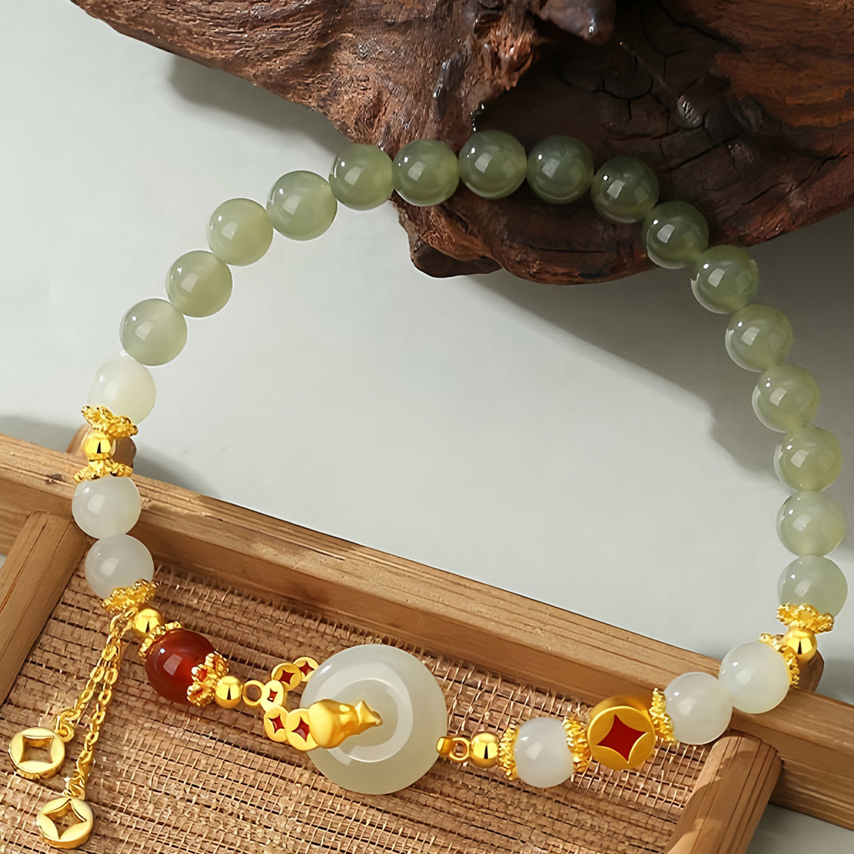 S925 Silver Hetian Jade Peace Buckle Jade Bracelet(elastic cord)