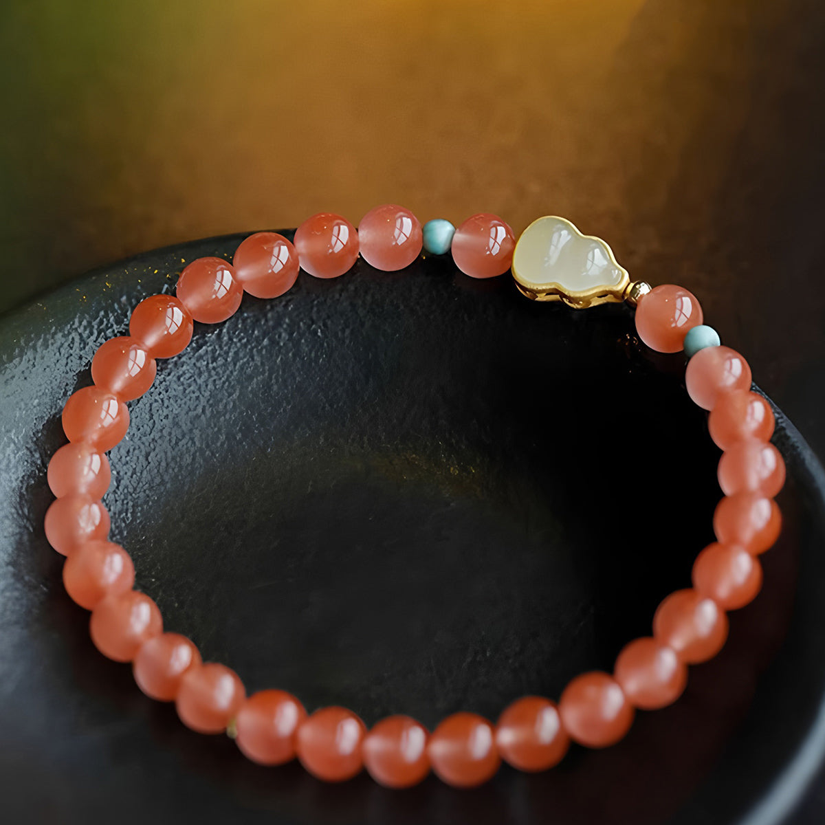 This natural agate pink jade beaded bracelet blends femininity with timeless energy. Each bead showcases the soft pink hue of jade, known for promoting calmness and emotional balance.
