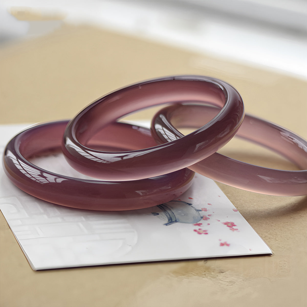 Classic imperial deep purple jade bracelet, translucent color, made of pure natural jade bracelet polished, symbolizing harmony and balance.