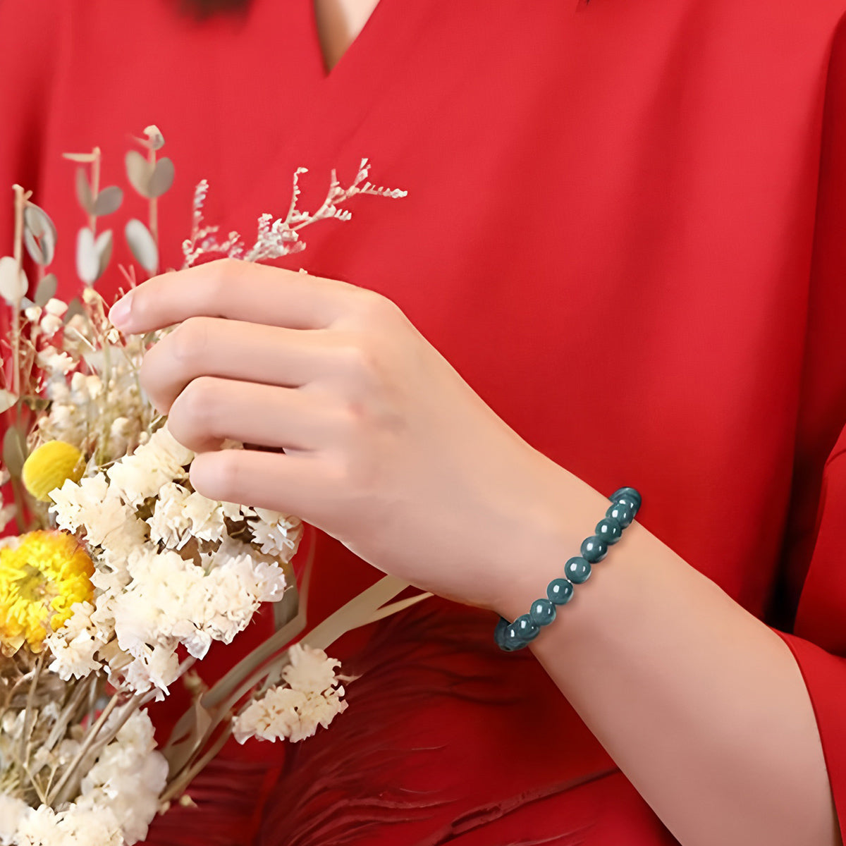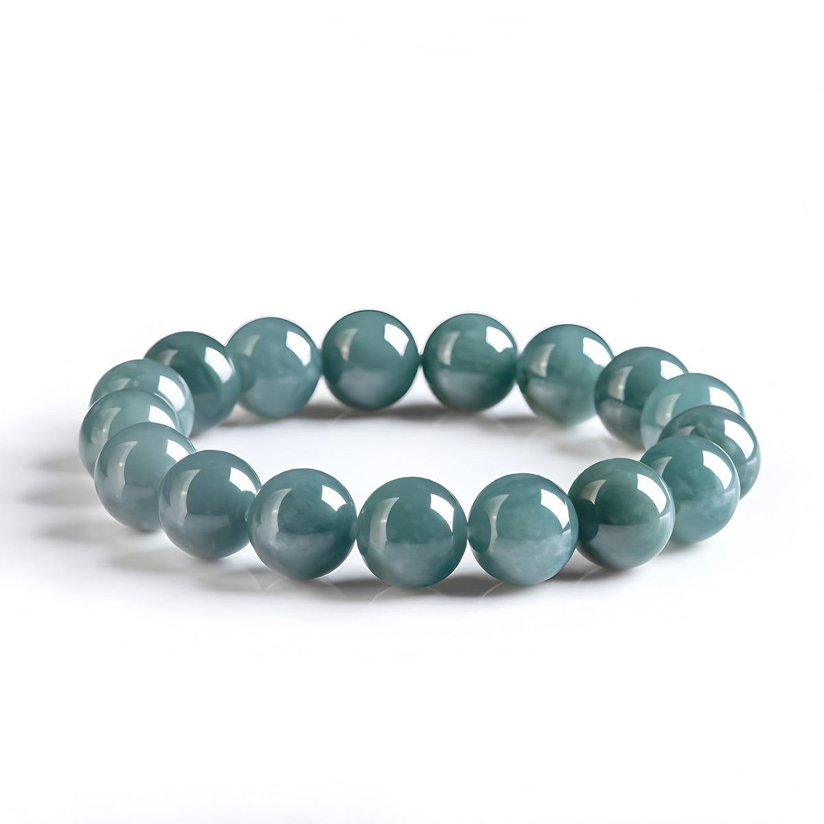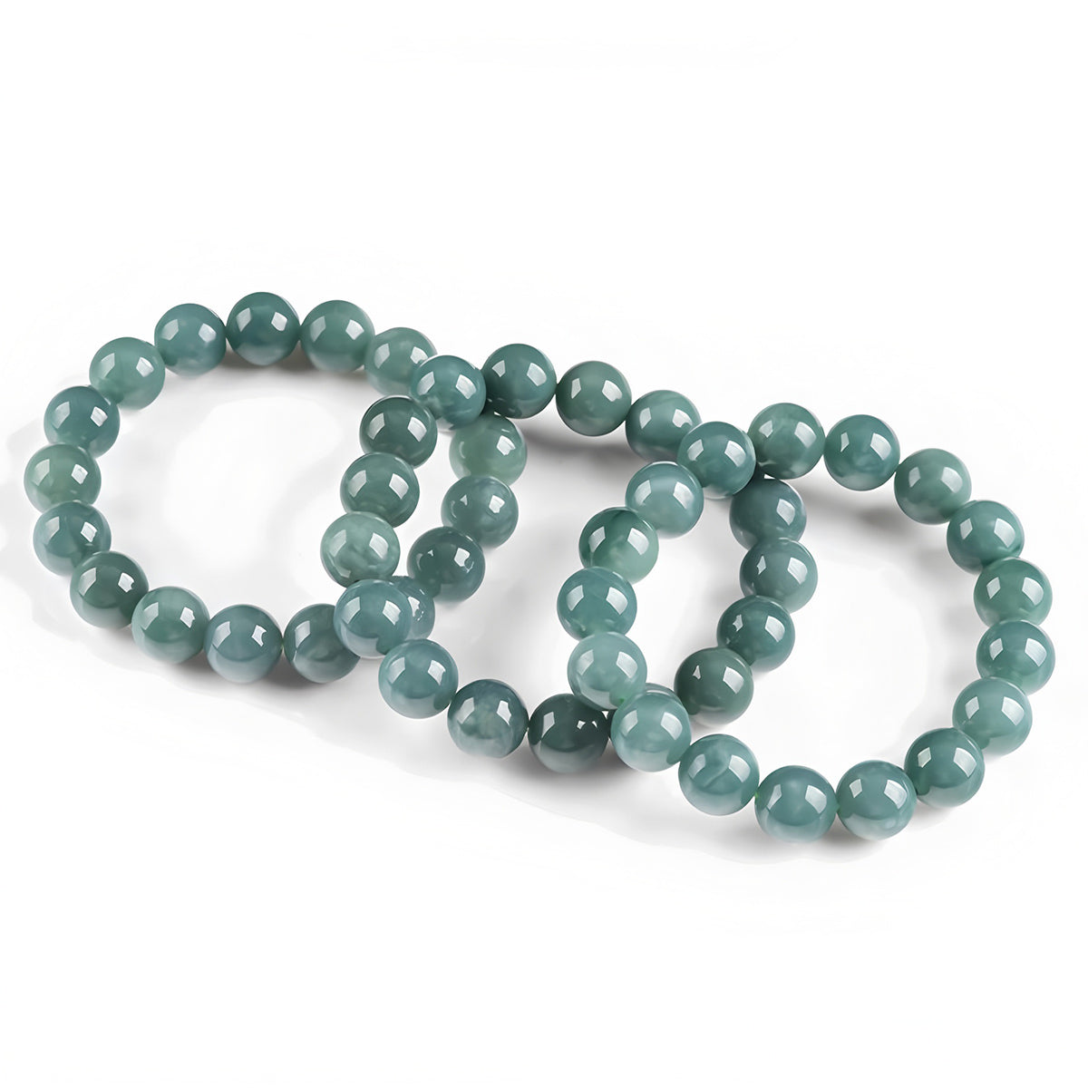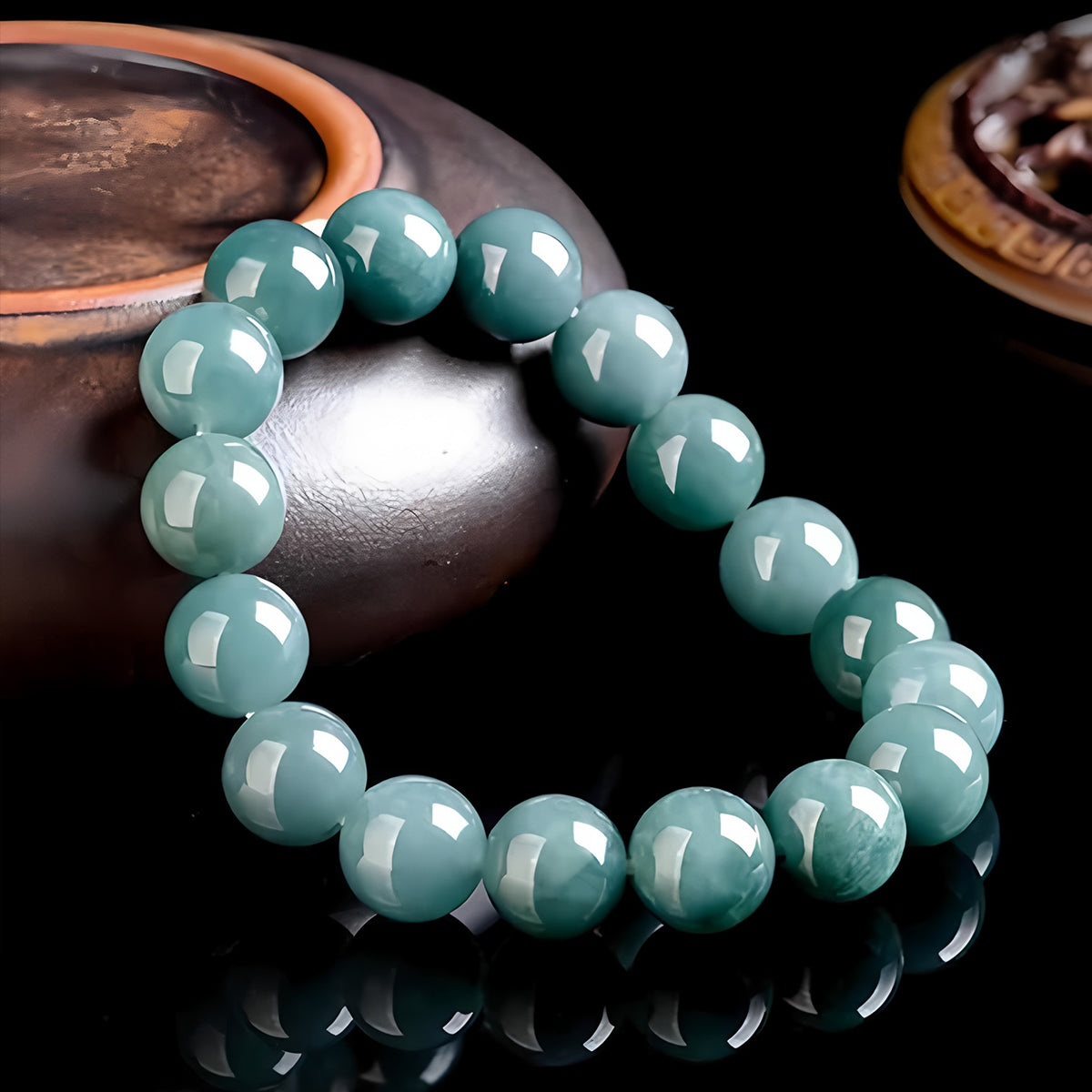 This natural A-grade light blue jade bead bracelet is crafted from carefully selected, high-quality Burmese jade. Each bead displays the jade's natural, transparent texture and light blue luster, highlighting the exquisite craftsmanship and authenticity of the jade.