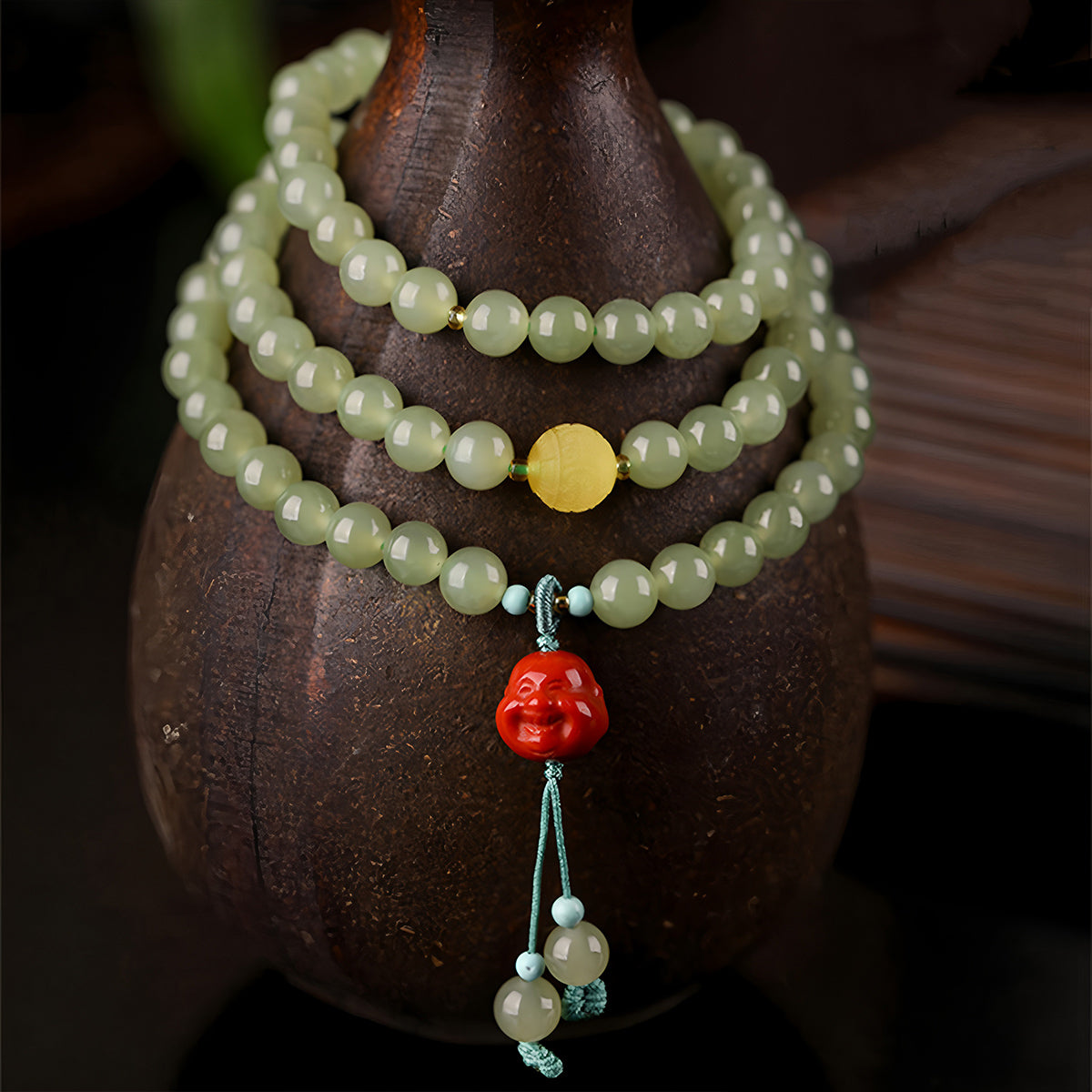 - Materials: Hetian jade and amber