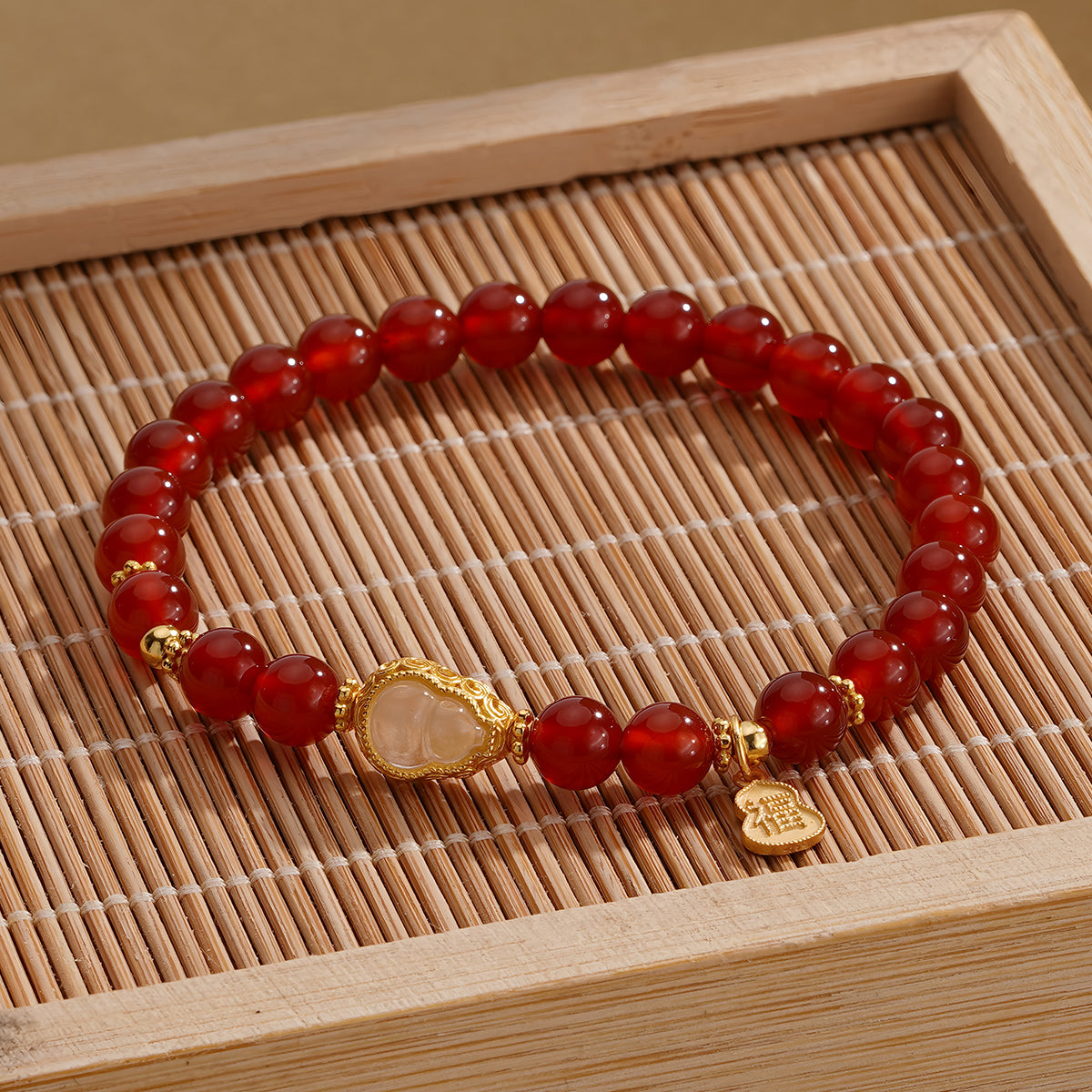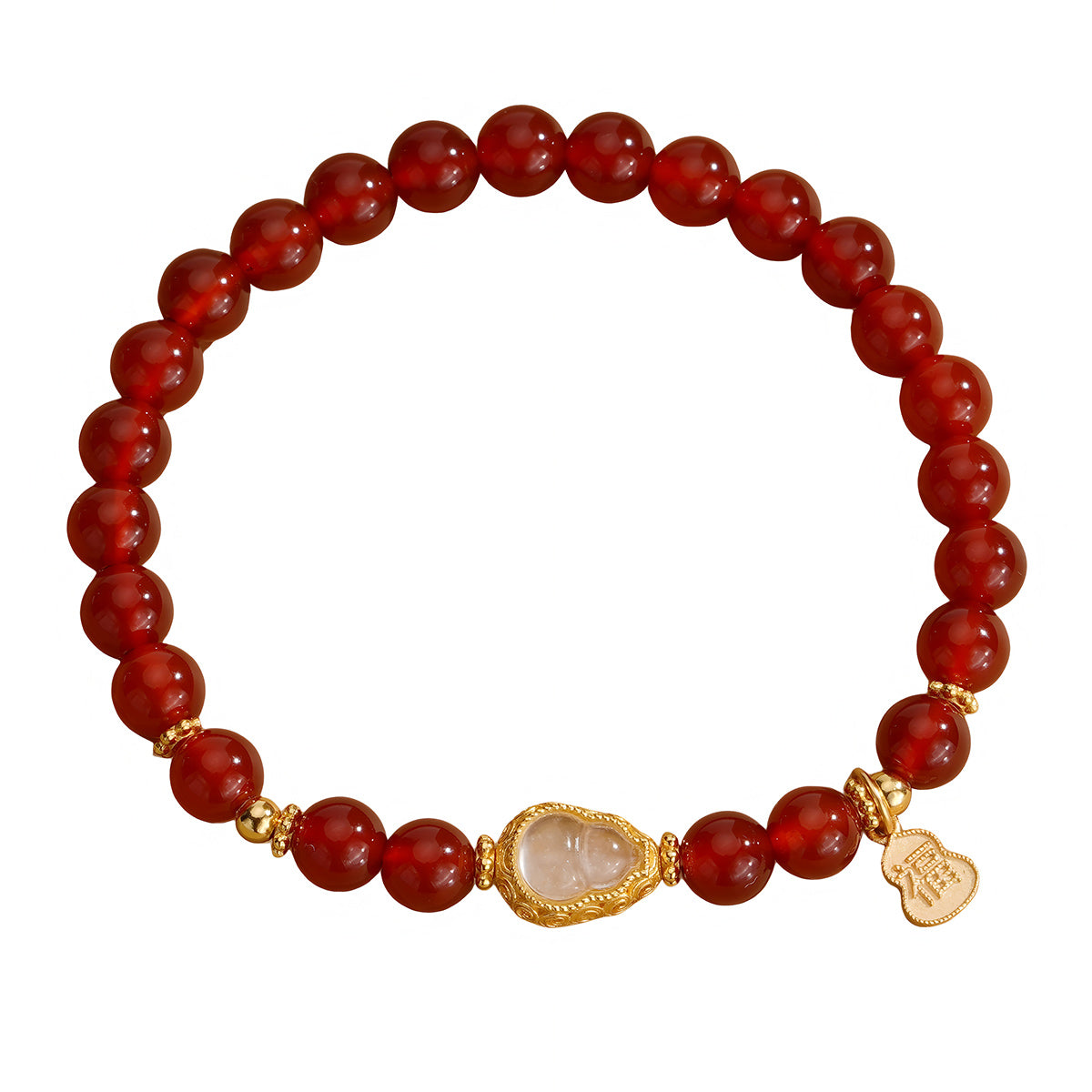 Natural Red Agate White Gourd Jade Beaded Bracelet(Bead width 6.5mm)