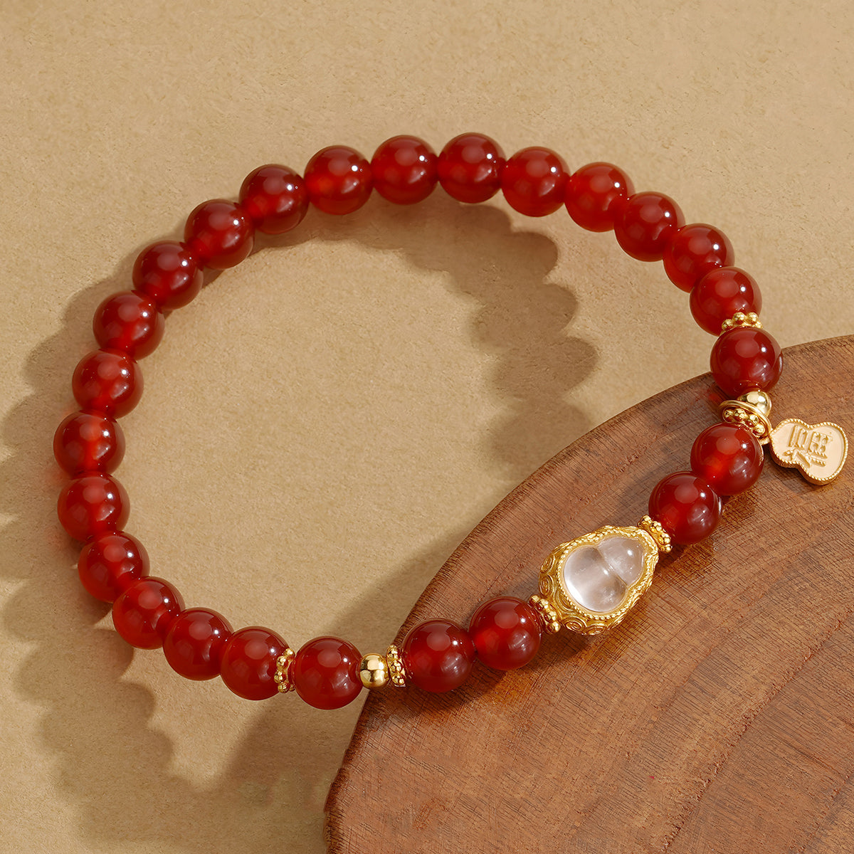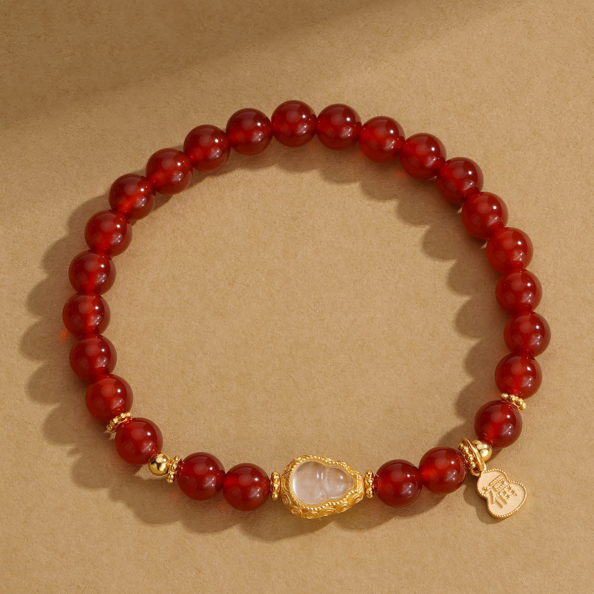 This Natural Red Agate White Gourd Jade Beaded Bracelet combines the deep, warm hues of red agate with the smooth, calming texture of white gourd-shaped jade beads. Known for their grounding and protective properties, red agate stones enhance emotional balance, while the white jade gourds symbolize health and prosperity. Expertly crafted, this bracelet offers both aesthetic appeal and meaningful energy, making it an ideal accessory for those seeking harmony and elegance in their daily wear.