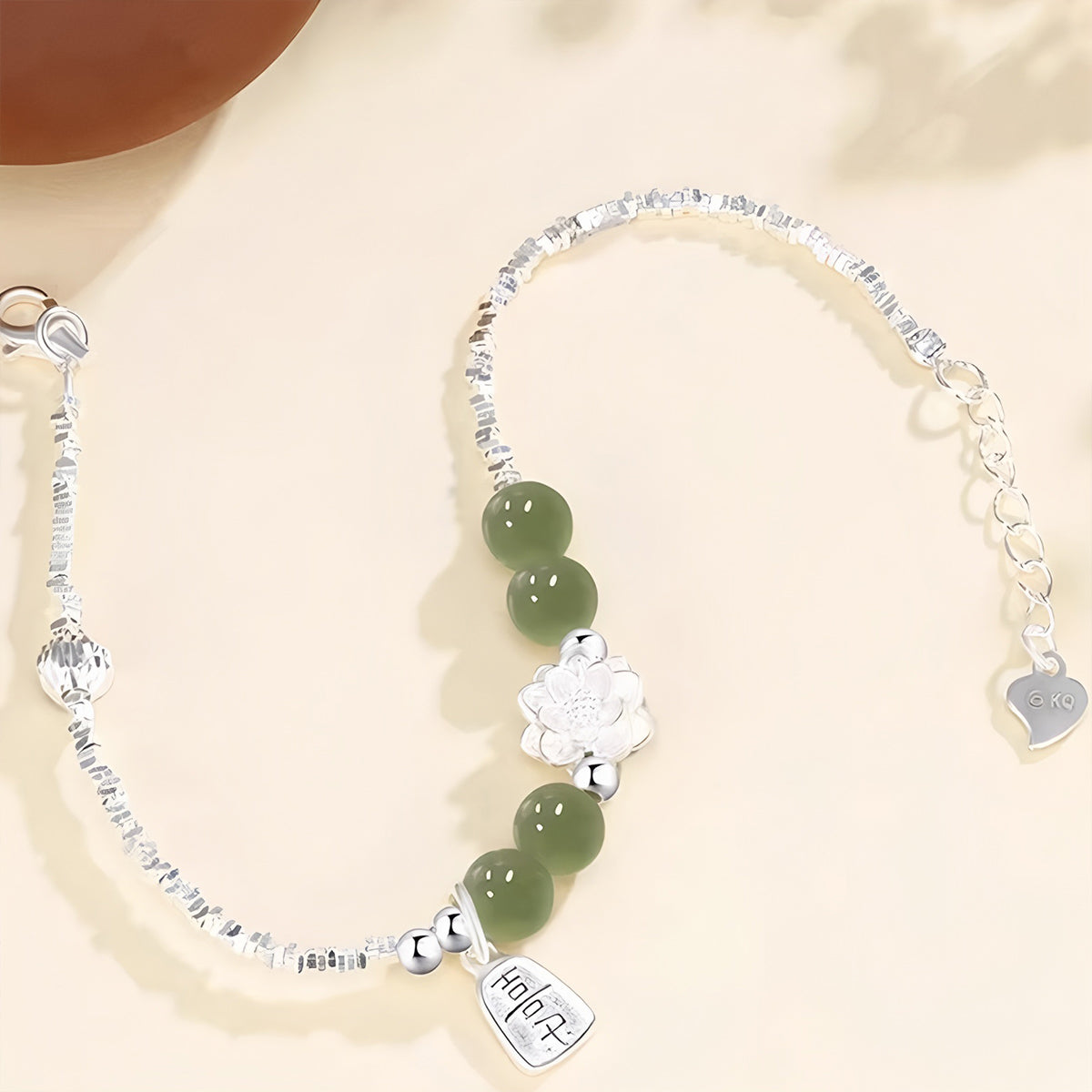 S925 Silver Hetian Jade Lotus Jade Bracelet